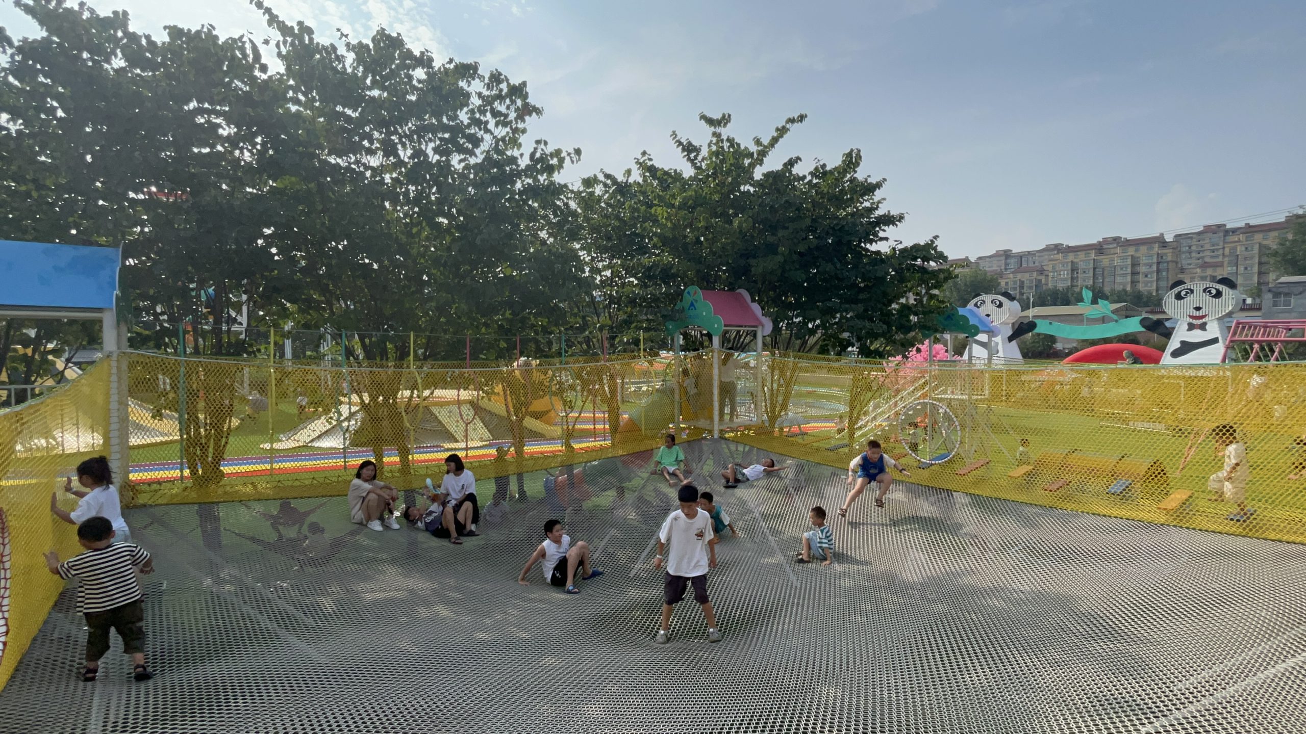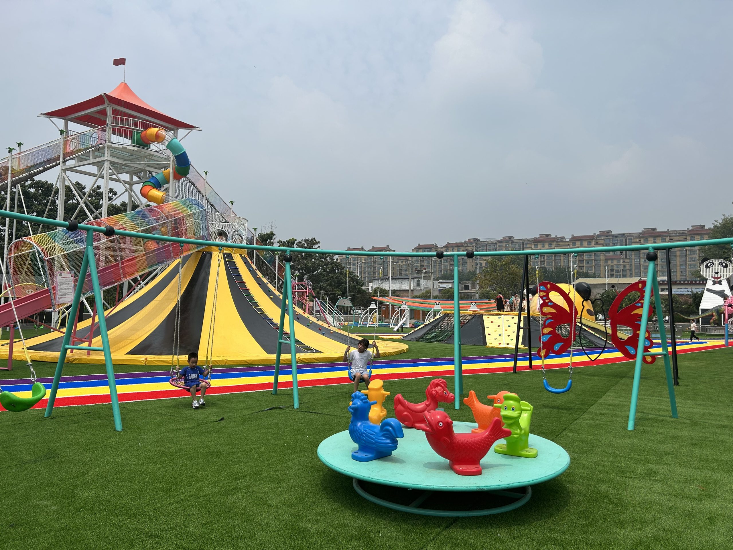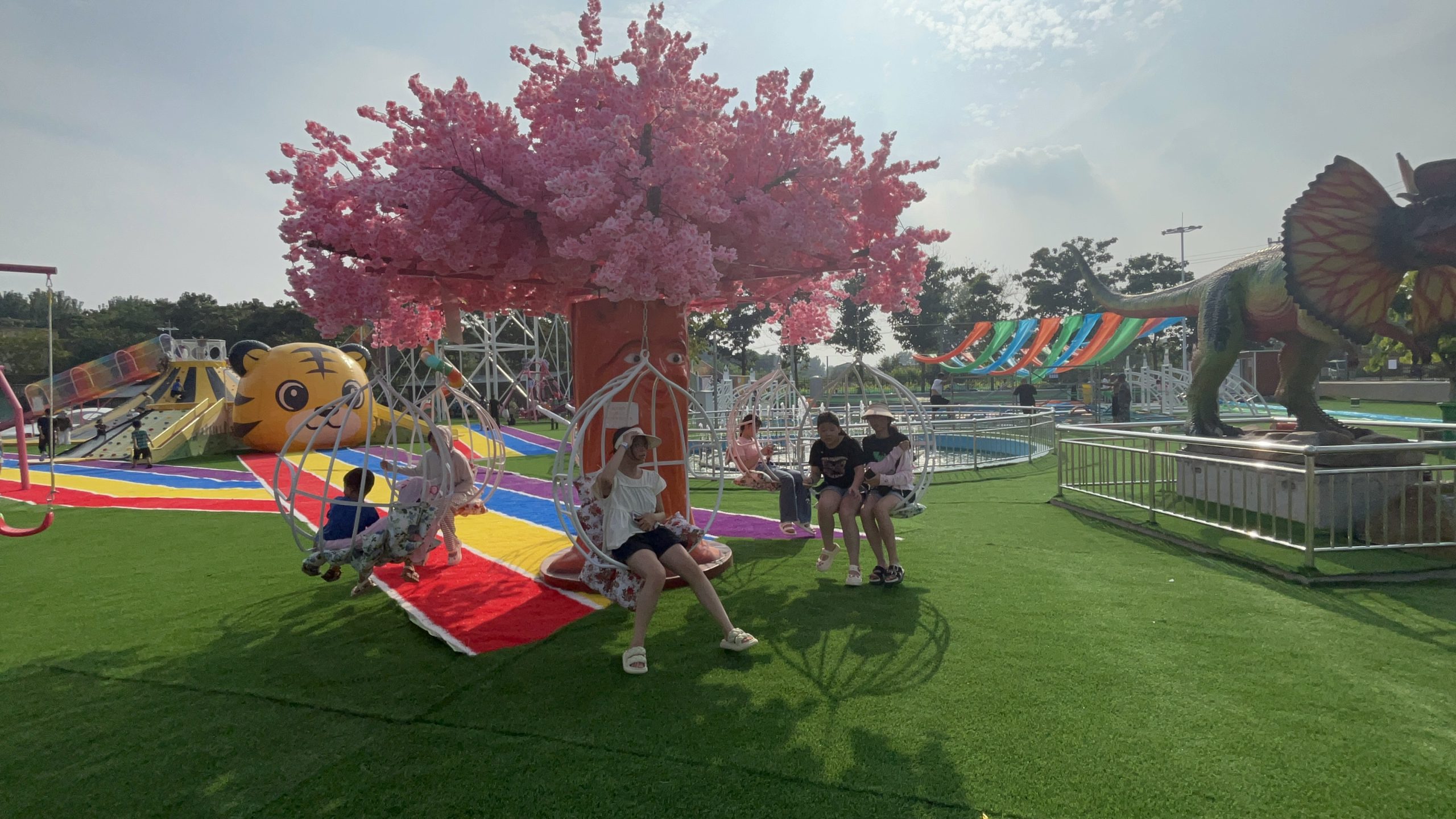 在项目规划设计阶段,安信文旅团队深入挖掘恐龙文化元素,将主题特色与无动力游乐设施创新融合。园区内科学布局了勇攀高峰、樱花大秋千、熊猫蹦蹦云、七彩滑道等30余种无动力项目,其中高达七八米的火山攀岩区完美呼应恐龙主题,既提供了适度的挑战性,又增强了园区的主题氛围。同时,团队充分考虑游客体验需求,设置了网红大秋千等打卡点,确保游乐项目兼具趣味性与互动性。