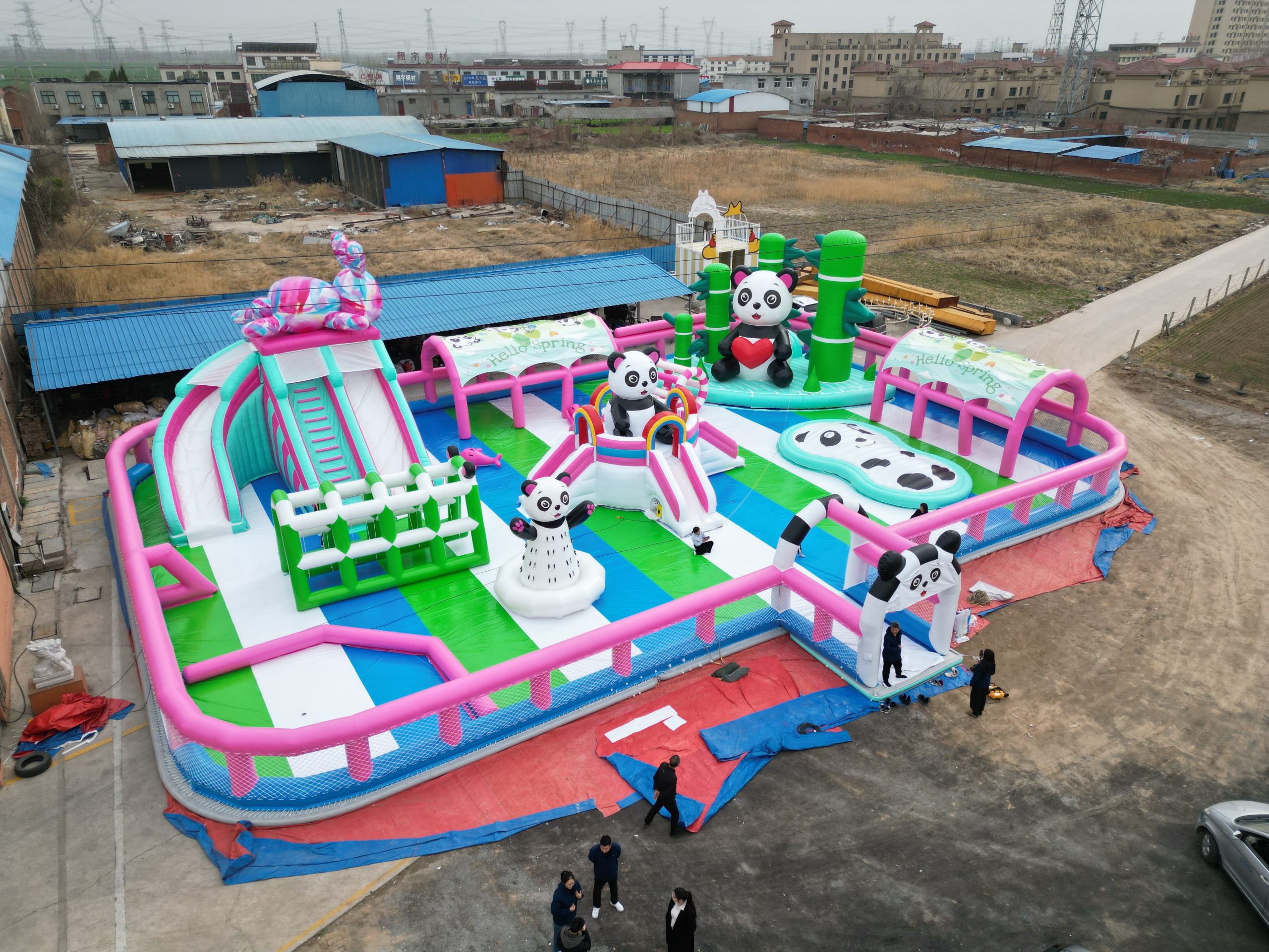 安信游乐承建山东聊城东阿县鱼山生态养生园水上熊猫漂浮乐园