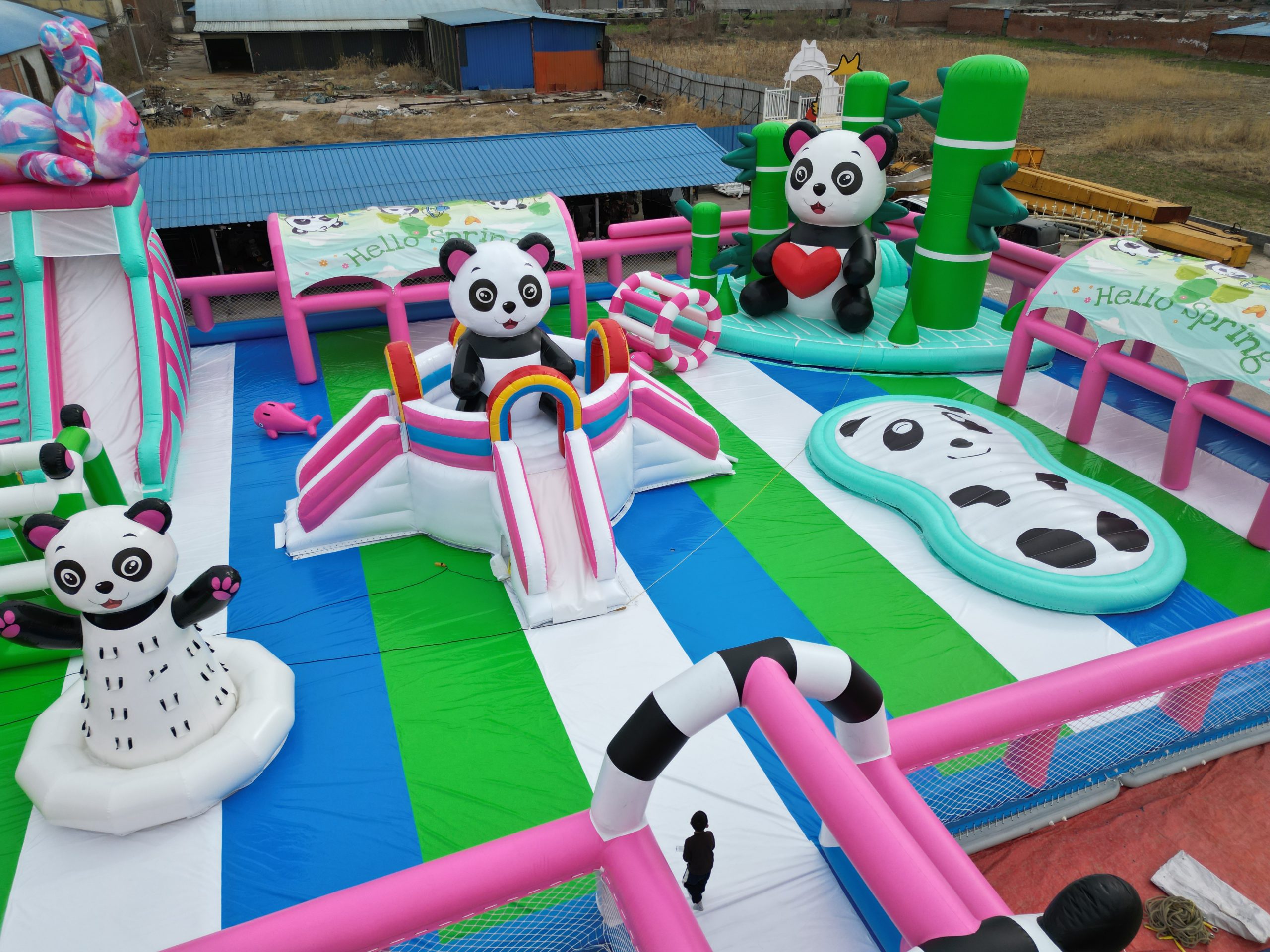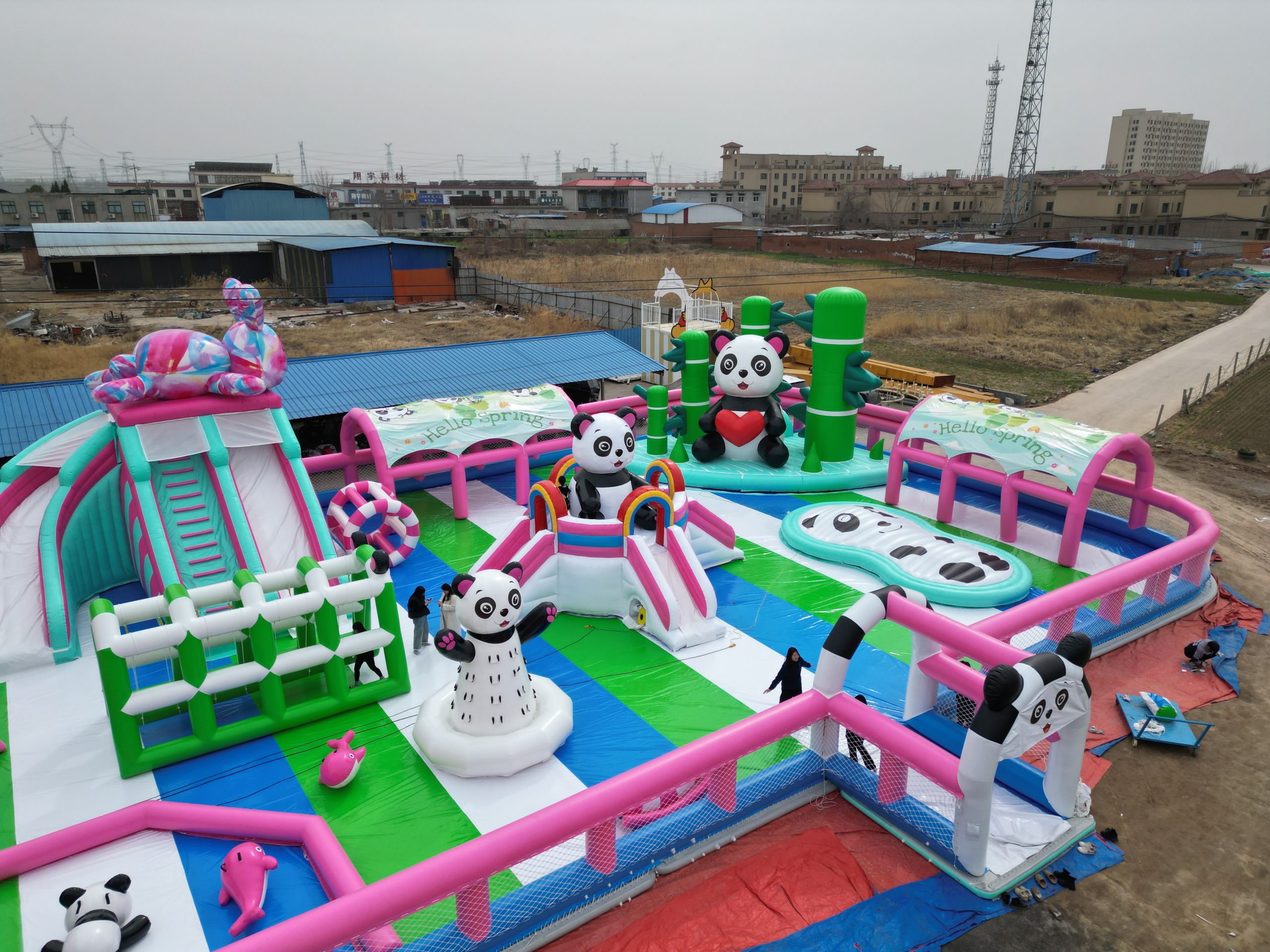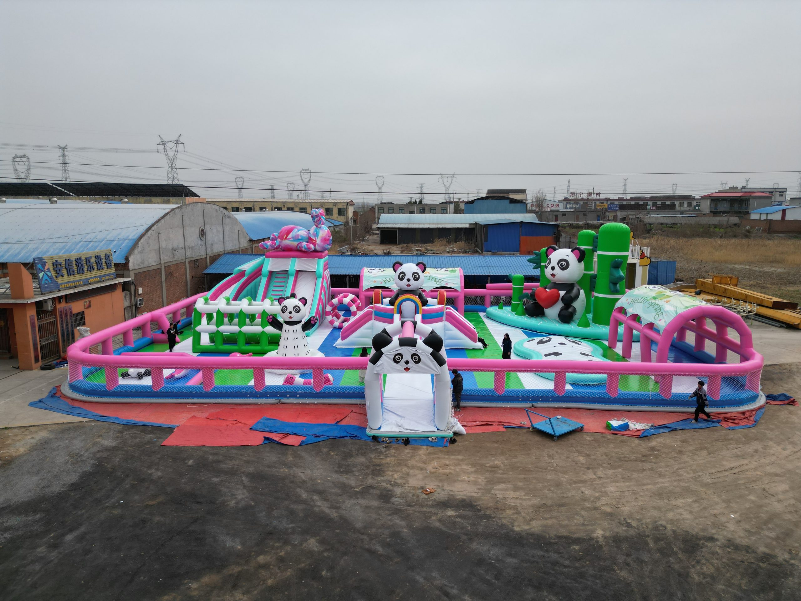 安信游乐承建山东聊城东阿县鱼山生态养生园水上熊猫漂浮乐园