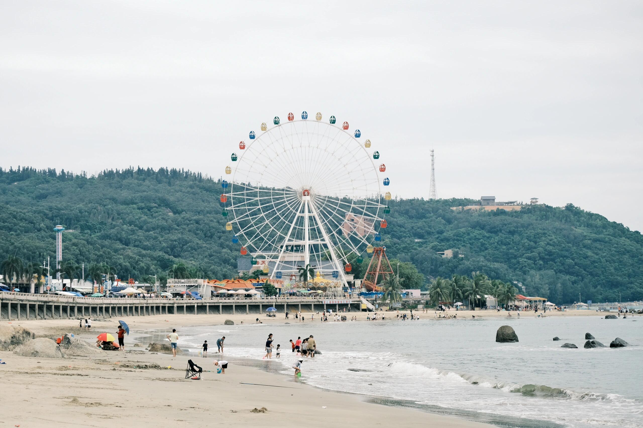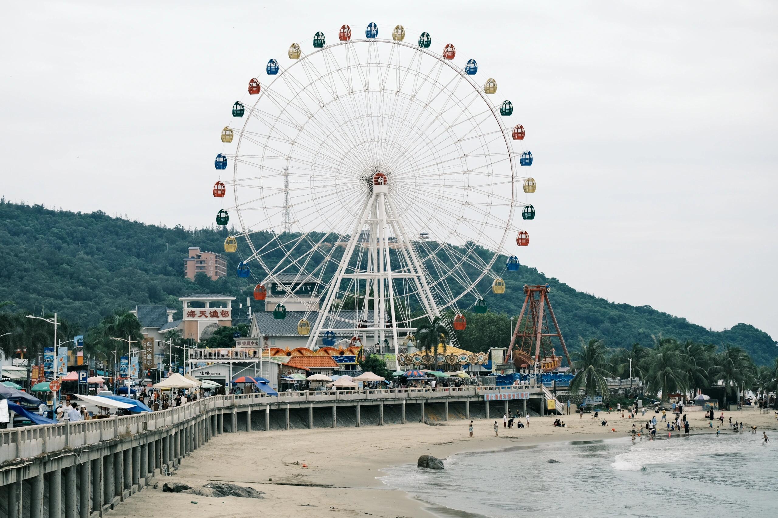 项目运营以来,摩天轮凭借其优越的观景功能成为游客必体验项目。乘坐至最高点时可俯瞰沙扒湾全景,将海天一线、夕阳余晖及小镇风貌尽收眼底,为游客创造了独特的观光体验。合理的票价设置(成人30元/次,1.2米以下儿童免费)也使其成为适合全年龄段游客的优质选择。